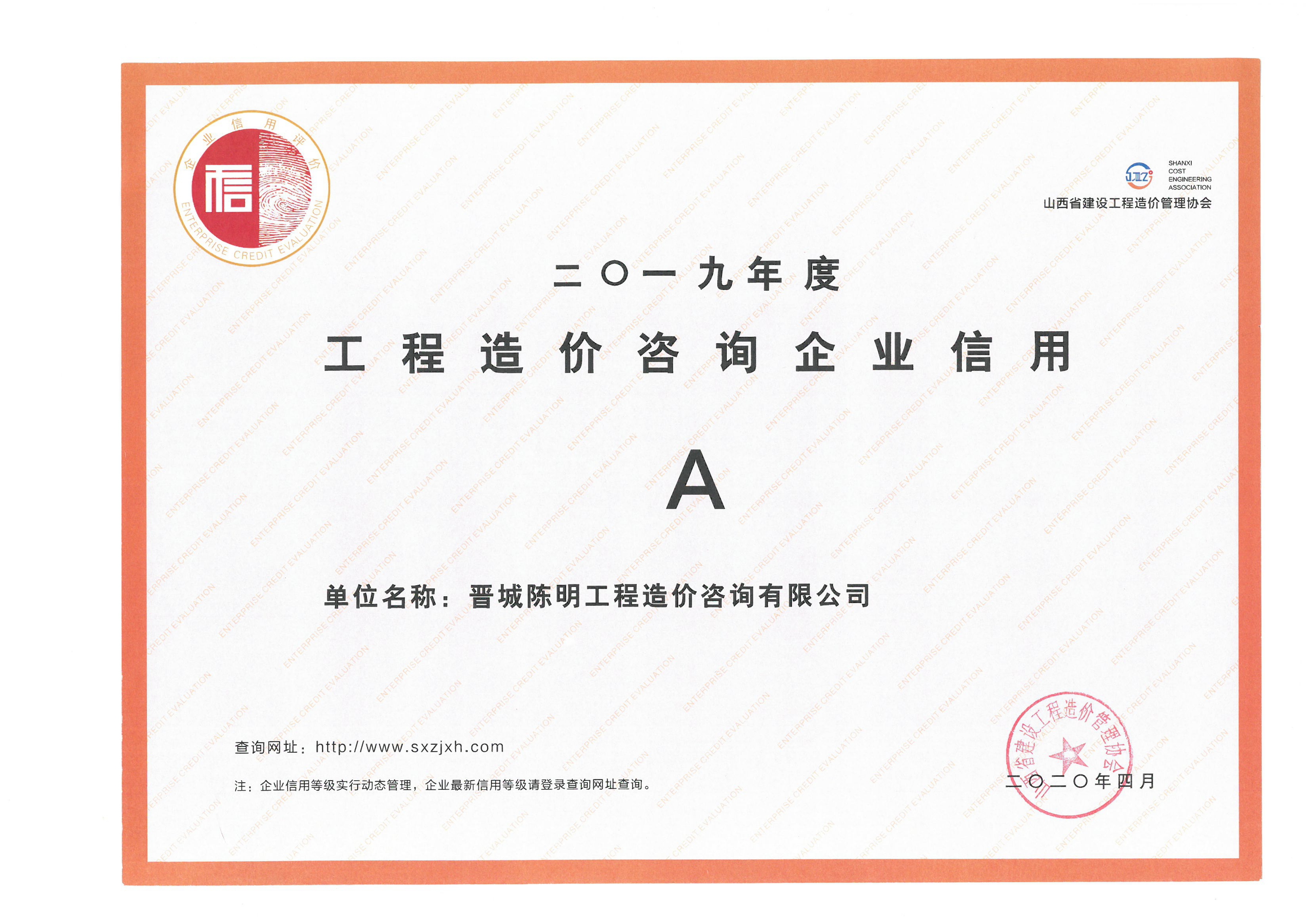 工程造價(jià)咨詢企業(yè)信用A級(jí)